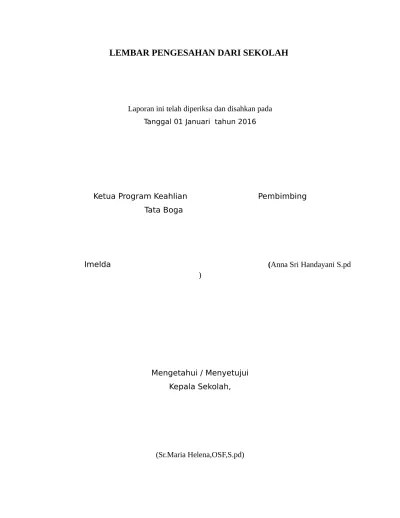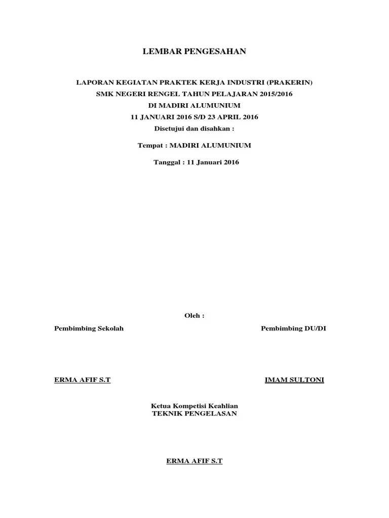 Contoh lembar pengesahan laporan prakerin makalah skripsi pkl smk kuliah.